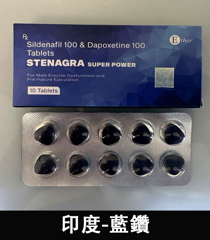 印度藍鑽(Stenagra Super Power)是一款來自印度 AMBITREE 藥廠的高效雙效壯陽藥,結合威而鋼的助勃成分「西地那非」與早洩延時成分「達泊西汀」,一次解決男性勃起障礙與射精過快問題,是追求硬度與持久力男性的熱門選擇。