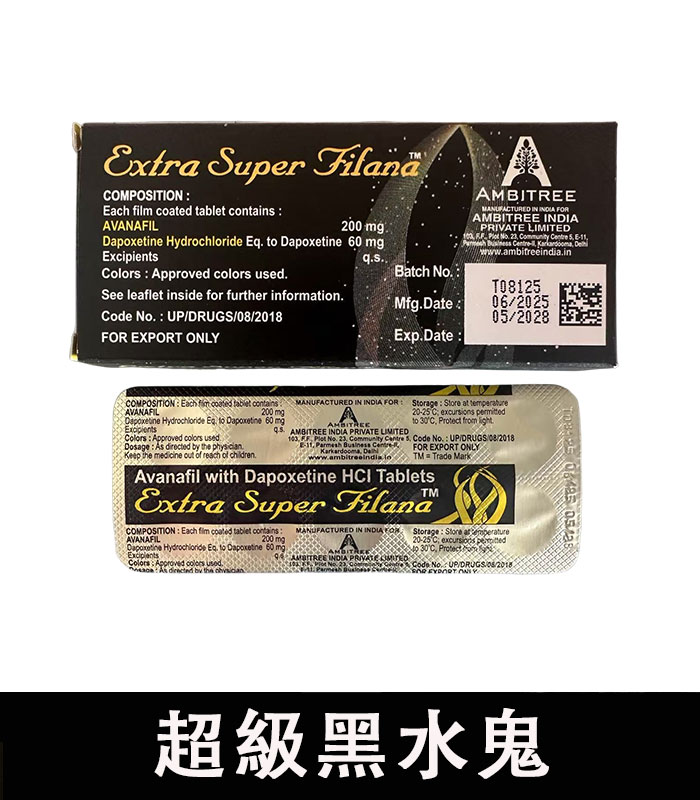 商品名稱:超級黑水鬼(Extra Super Filana/特級阿伐那非雙效片)